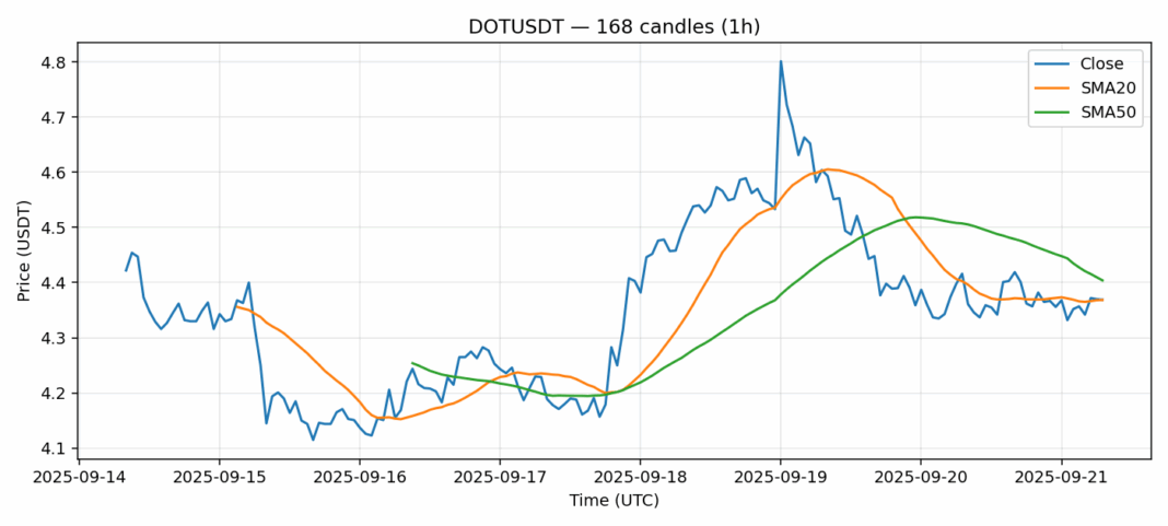Polkadot — 1h candles, 7D window (SMA20/SMA50, RSI).