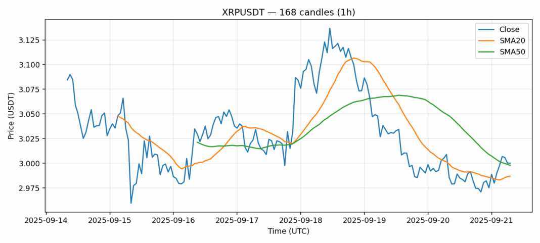 XRPUSDT is currently trading at $3.00, showing a slight 24-hour decline of -0.22%. The price is hovering just above the 20-day SMA at $2.987 and below the 50-day SMA at $2.998, indicating a potential consolidation phase. The RSI at 60.19 suggests neutral to slightly bullish momentum without being overbought. Volume remains robust at over $211 million, supporting active participation. Volatility is moderate at 2.17%, typical for XRP. Given the tight range between key SMAs, traders should watch for a breakout above $3.02 for bullish entries or a drop below $2.98 for short opportunities. Risk management is crucial; consider stop-losses around $2.95.