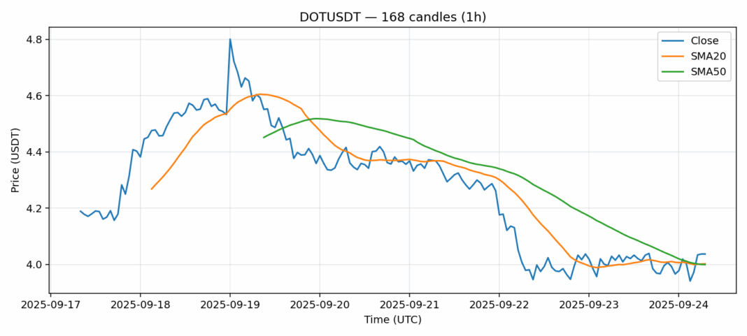 Polkadot — 1h candles, 7D window (SMA20/SMA50, RSI).