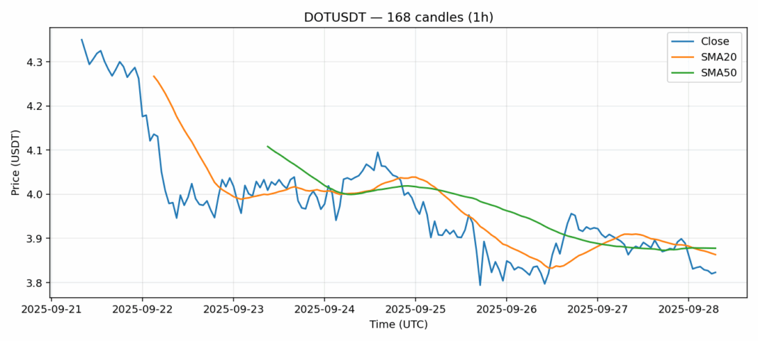 Polkadot — 1h candles, 7D window (SMA20/SMA50, RSI).