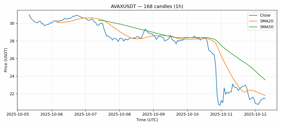 AVAX is showing concerning technical signals as it trades at $21.45, down 3.29% over the past 24 hours. The cryptocurrency has slipped below both its 20-day SMA ($21.80) and 50-day SMA ($23.57), indicating sustained bearish momentum. However, the RSI reading of 28.69 suggests AVAX is deeply oversold, potentially setting up for a short-term bounce. Trading volume remains healthy at $122 million, though volatility remains elevated at nearly 8%. For traders, current levels present a potential accumulation opportunity with tight stop losses below $20.50. Resistance sits near the $22.50 level, which could serve as a take-profit target for short-term positions. The broader market sentiment will likely dictate whether AVAX can capitalize on its oversold condition or continues its descent.