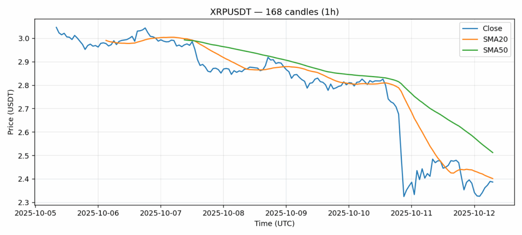 Ripple — 1h candles, 7D window (SMA20/SMA50, RSI).
