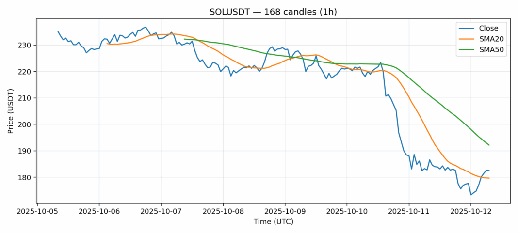 Solana — 1h candles, 7D window (SMA20/SMA50, RSI).