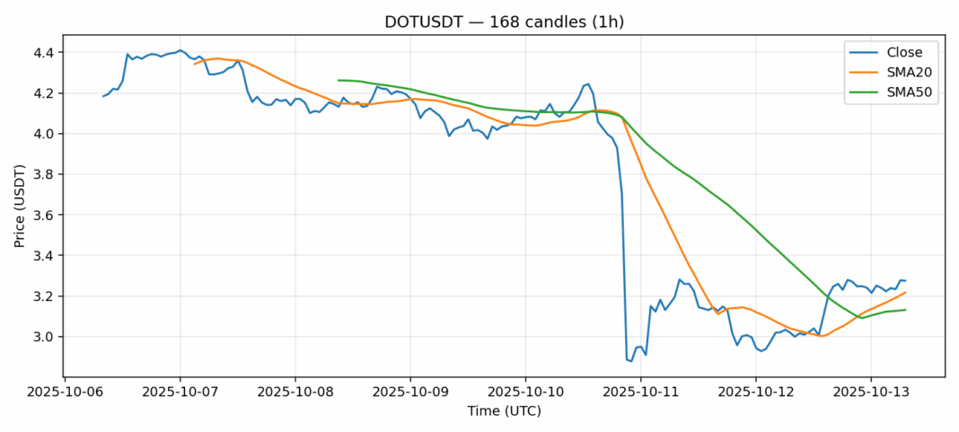 Polkadot — 1h candles, 7D window (SMA20/SMA50, RSI).