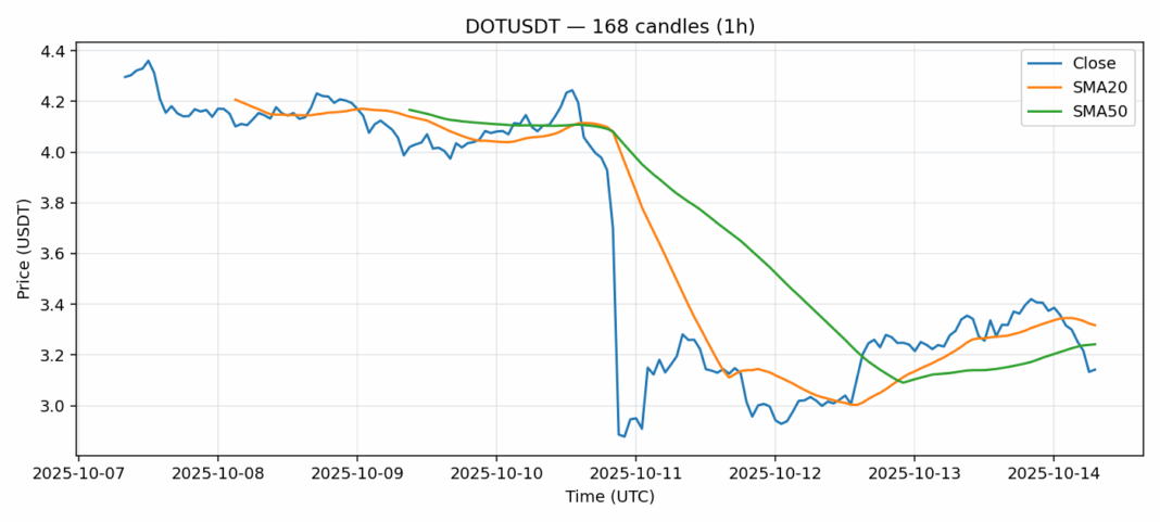 Polkadot — 1h candles, 7D window (SMA20/SMA50, RSI).