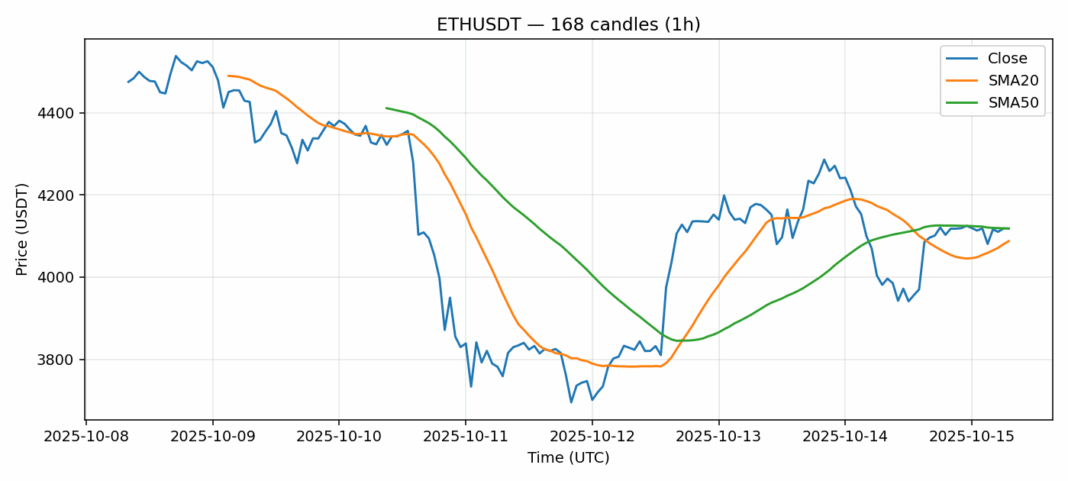 Ethereum continues to show resilience above the $4,100 level, posting a solid 2.75% gain over the past 24 hours. The current price sits comfortably above the 20-day SMA at $4,087, indicating near-term bullish momentum, while trading near the 50-day SMA suggests potential consolidation around these levels. With RSI at 55.06, ETH remains in neutral territory with room for upward movement before reaching overbought conditions. The 24-hour trading volume of $3.65 billion demonstrates healthy market participation, though the 4.86% volatility reading suggests traders should brace for potential swings. For traders, maintaining long positions with stops below $4,050 seems prudent, while aggressive buyers might wait for a pullback toward the $4,080 support level. The key resistance to watch remains the $4,200 psychological level, which if broken could trigger another leg higher toward yearly highs.