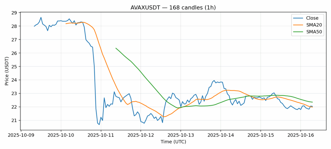 AVAX is showing mixed signals in today’s trading session, currently trading at $22.04 with a 3.29% decline over the past 24 hours. The price action finds itself in a critical technical zone, trading just above the 20-day SMA at $21.98 but below the 50-day SMA at $22.35, indicating potential consolidation. The RSI reading of 52.55 suggests neutral momentum with neither overbought nor oversold conditions. Trading volume of $69.6 million appears healthy, providing adequate liquidity for position entries and exits. The 8.64% volatility reading indicates moderate price swings, typical for mid-cap altcoins. Traders should watch for a decisive break above the 50-day SMA for bullish confirmation, while a breakdown below $21.50 could signal further downside. Consider scaling into positions with tight stops given the current indecisive market structure.