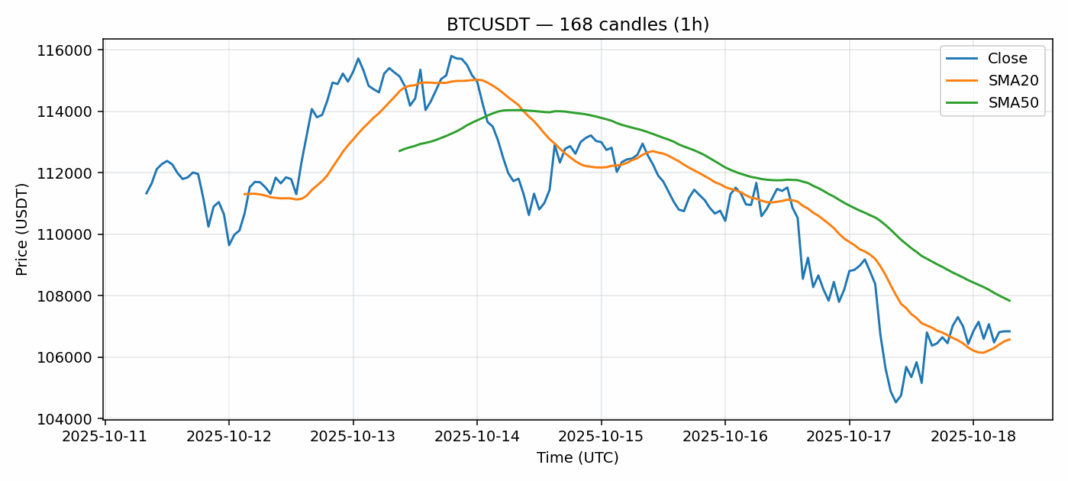 Bitcoin — 1h candles, 7D window (SMA20/SMA50, RSI).