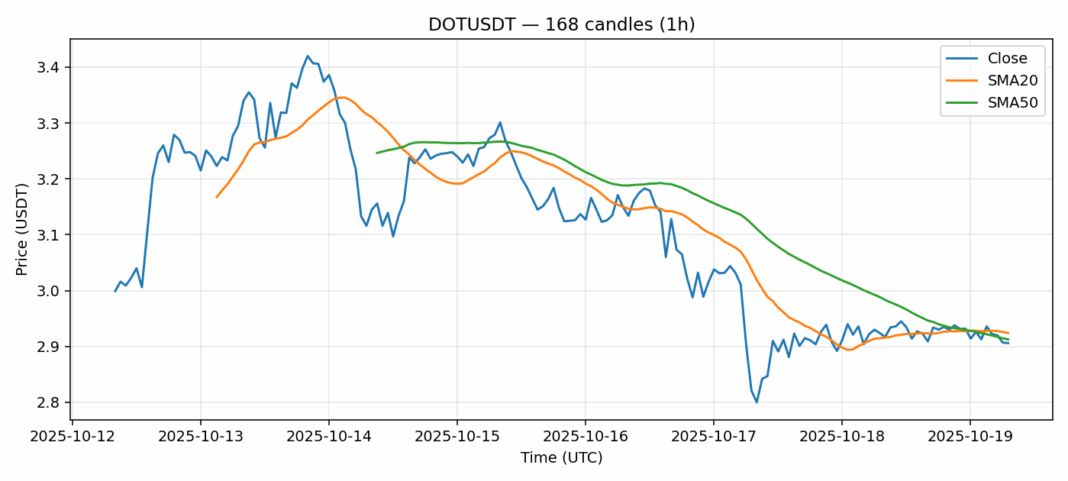 Polkadot — 1h candles, 7D window (SMA20/SMA50, RSI).