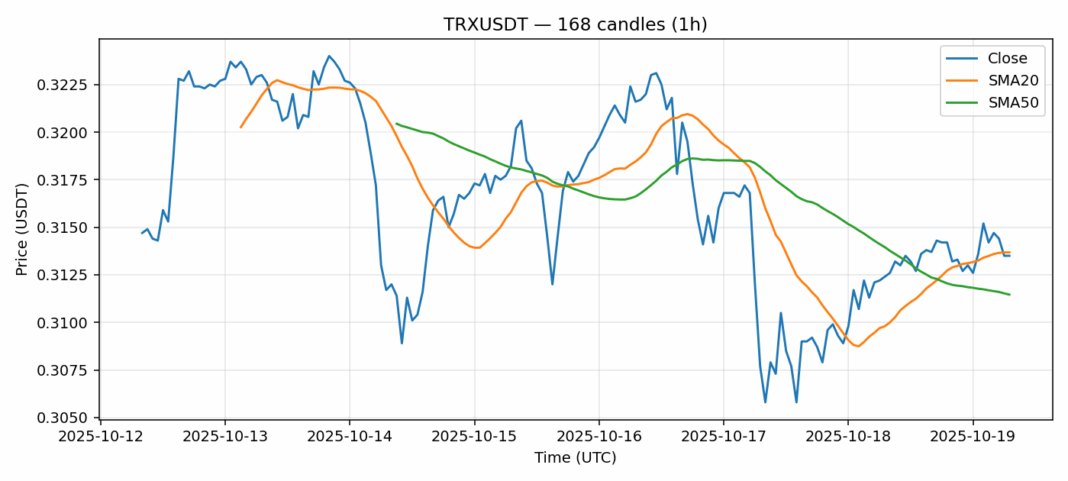TRON — 1h candles, 7D window (SMA20/SMA50, RSI).