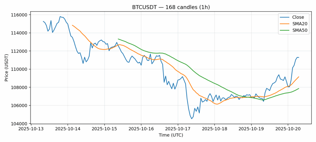 Bitcoin — 1h candles, 7D window (SMA20/SMA50, RSI).