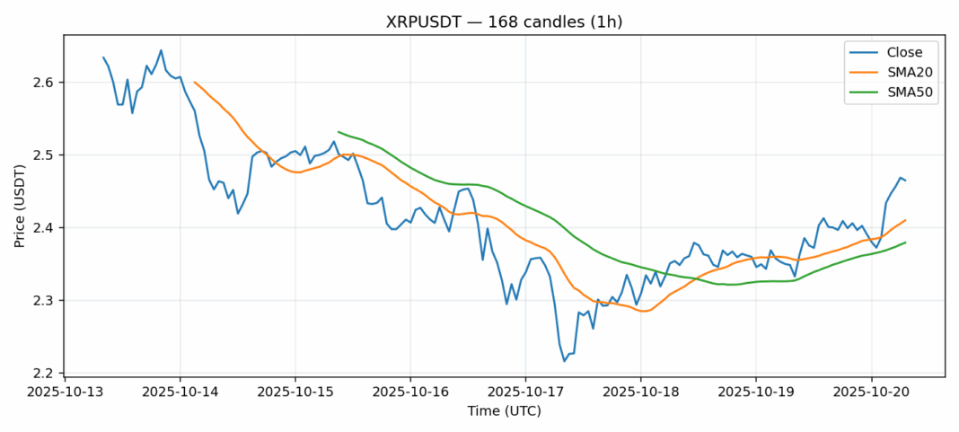 Ripple — 1h candles, 7D window (SMA20/SMA50, RSI).