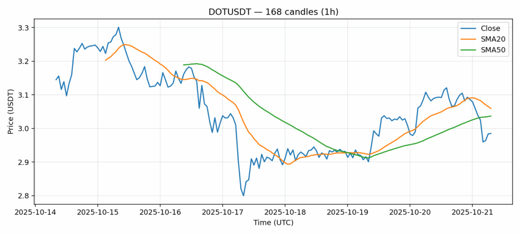 Polkadot — 1h candles, 7D window (SMA20/SMA50, RSI).
