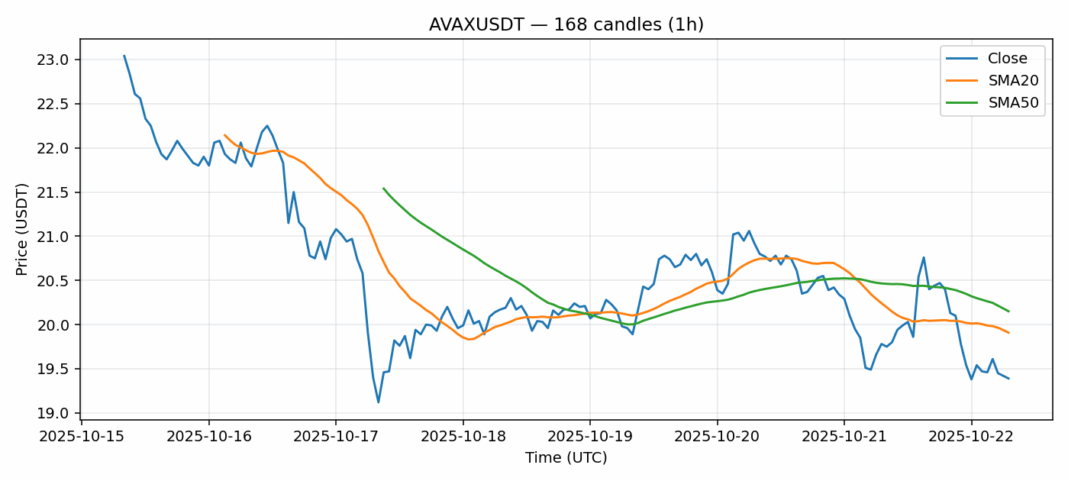 Avalanche — 1h candles, 7D window (SMA20/SMA50, RSI).