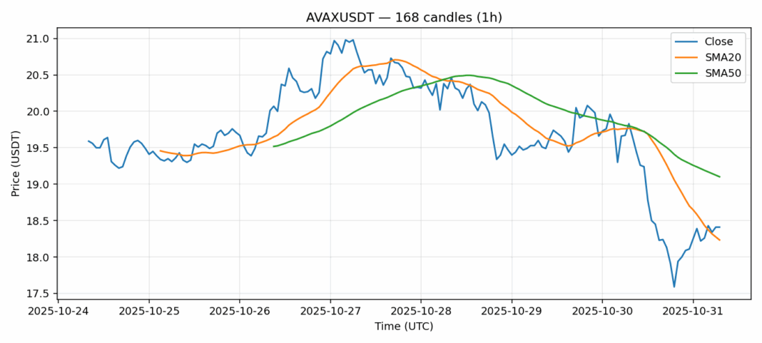 Avalanche — 1h candles, 7D window (SMA20/SMA50, RSI).
