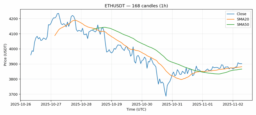 Ethereum continues to show resilience above the $3,900 level, posting a modest 1.12% gain over the past 24 hours. The current price sits comfortably above both the 20-day SMA ($3,882) and 50-day SMA ($3,866), indicating underlying strength in the medium-term trend. However, traders should note the RSI reading of 69.36 suggests ETH is approaching overbought territory, which could signal potential near-term consolidation. The substantial $596 million trading volume demonstrates healthy market participation, while the 3.15% volatility indicates relatively stable price action compared to typical crypto standards. For traders, consider taking partial profits near the $3,950-$4,000 resistance zone while maintaining core positions. Support appears firm around $3,850, with a break below potentially testing the $3,800 level. Position sizing remains crucial given the elevated RSI reading.