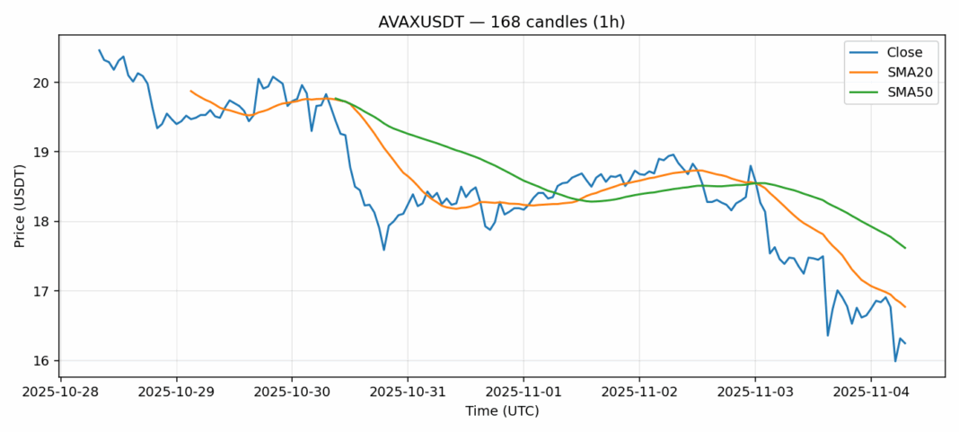AVAX is showing concerning technical weakness as it trades at $16.25, down over 6% in the past 24 hours. The asset currently sits below both its 20-day SMA ($16.77) and 50-day SMA ($17.62), indicating sustained bearish momentum. However, the RSI reading of 34.8 suggests AVAX is approaching oversold territory, which could present a potential buying opportunity for contrarian traders. Volume remains substantial at over $102 million, indicating continued market interest despite the price decline. The 5.34% volatility reading suggests moderate price swings are likely to continue. For traders, consider scaling into long positions near current levels with tight stop-losses below $15.50. Resistance awaits at the $17.00-$17.50 zone, where previous support may now act as resistance. Risk management remains crucial given the current bearish technical structure.