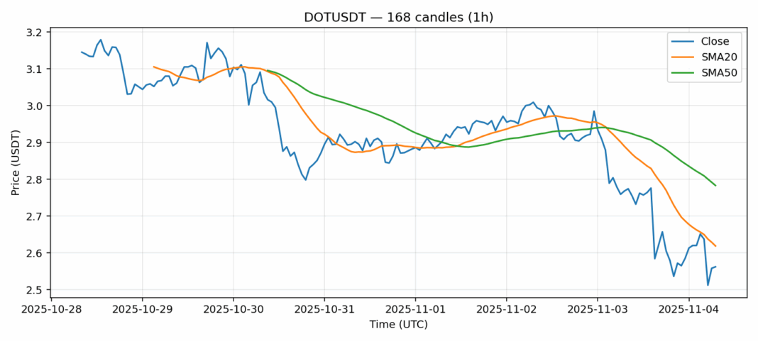 Polkadot — 1h candles, 7D window (SMA20/SMA50, RSI).