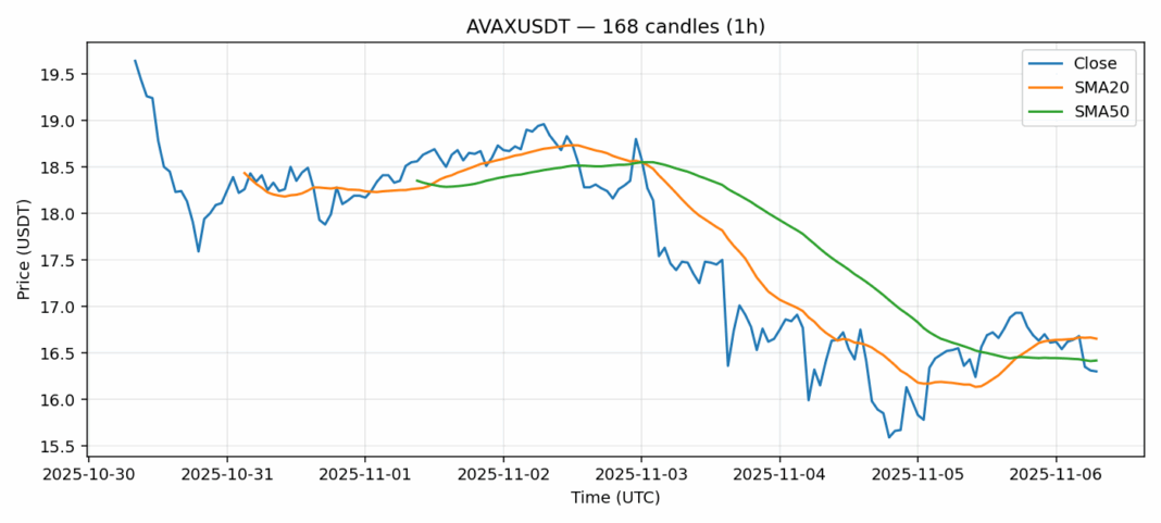 AVAX is showing significant technical weakness as it trades at $16.30, down 1.27% over the past 24 hours. The most concerning signal comes from the RSI reading of 20.56, indicating severely oversold conditions that typically precede either a relief bounce or continued capitulation. Price currently sits below both the 20-day SMA ($16.65) and 50-day SMA ($16.42), confirming the bearish near-term structure. However, the extreme RSI level suggests the selling may be overextended. Trading volume of $52 million shows moderate participation in the current move. For traders, consider scaling into long positions near current levels with tight stops below $15.80, targeting a rebound toward the $17.20 resistance zone. Alternatively, wait for a confirmed break above the 20-day SMA before entering swing positions. Risk management is crucial given the 5.7% volatility reading.
