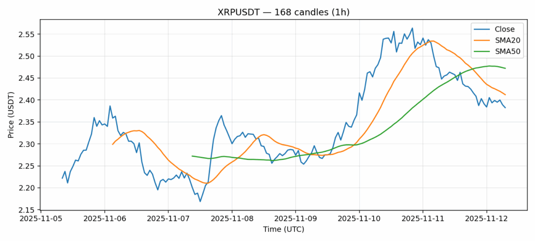 Ripple — 1h candles, 7D window (SMA20/SMA50, RSI).