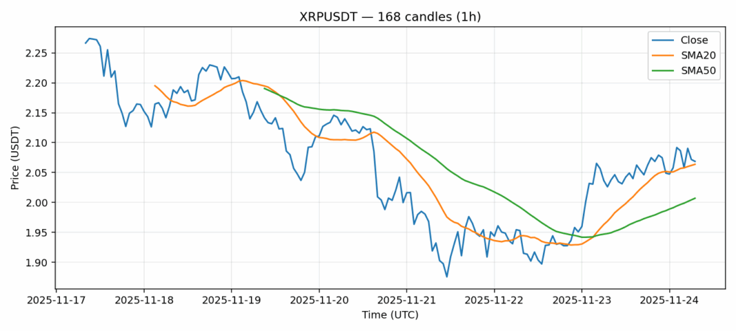 XRP is showing resilience as it trades at $2.0687, posting a solid 1.41% gain over the past 24 hours. The current price sits just above the 20-day SMA of $2.063, indicating near-term bullish momentum, while remaining comfortably above the 50-day SMA of $2.007, suggesting the medium-term trend remains constructive. With RSI at 55.35, XRP maintains healthy momentum without entering overbought territory. The $251 million trading volume demonstrates decent participation, though the 4.93% volatility reading suggests traders should brace for potential swings. Given the technical setup, I’d recommend watching for a sustained break above $2.07 as confirmation for further upside toward $2.15. Support holds at the $2.00 psychological level and the 50-day SMA. Position sizing remains crucial given crypto’s inherent volatility.
