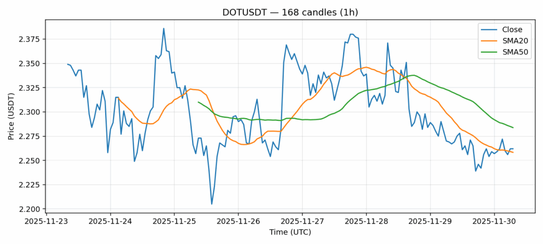 Polkadot — 1h candles, 7D window (SMA20/SMA50, RSI).