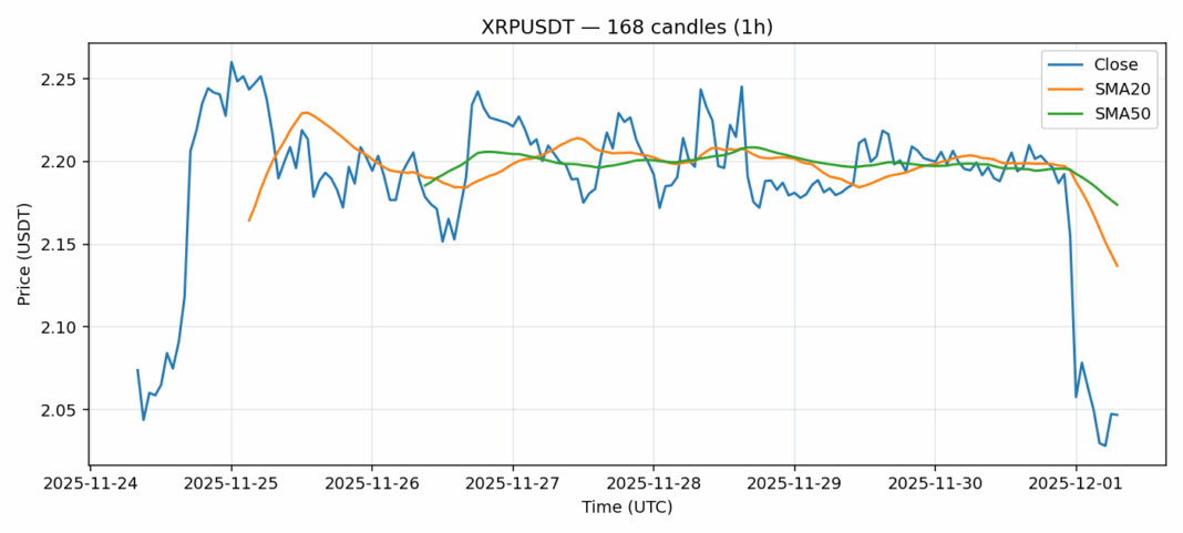 XRP/USDT is experiencing significant technical pressure, trading at $2.0469 after a sharp 6.7% decline over the past 24 hours. The most critical signal comes from the RSI reading of approximately 19, which indicates the asset is deeply oversold—a condition not seen often and typically preceding a potential relief rally or consolidation. Price has broken decisively below both the 20-day SMA ($2.137) and 50-day SMA ($2.174), confirming the near-term bearish structure. However, the substantial 24-hour volume of over $244 million suggests this move is being met with high participation, which could signal capitulation. For traders, this presents a high-risk, high-reward scenario. Aggressive contrarians might consider scaling into long positions here, using tight stops below recent lows, anticipating a mean reversion bounce toward the $2.13-$2.17 resistance zone. More conservative traders should wait for a confirmed bullish reversal pattern or a reclaiming of the 20-day SMA before entering, as volatility remains elevated at nearly 4%. The risk of further downside remains until key moving averages are recaptured.
